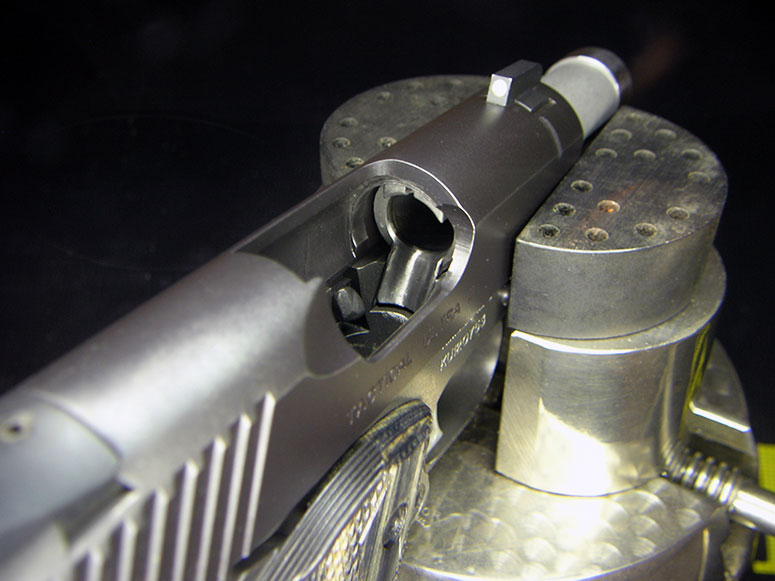 The gunsmiths at VPI were able to get this Kimber up and running again after polishing its feed ramp.