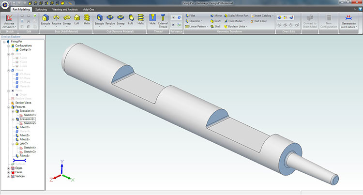 This 3D model shows the replacement firing pin that we designed for a customer's antique rifle.